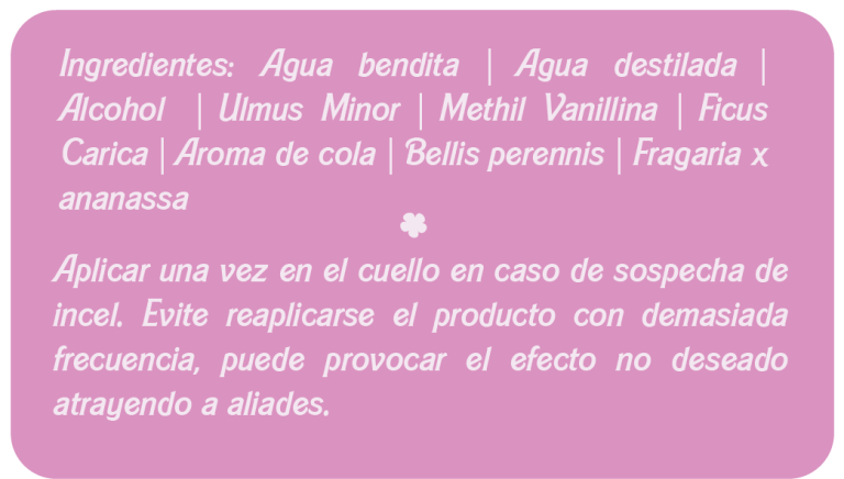 Proyecto de packaging de producto (en este caso, una poción con formato de perfume), cuya función es ahuyentar a los celibatos involuntarios o incels mediante una aplicación del producto en el cuello.