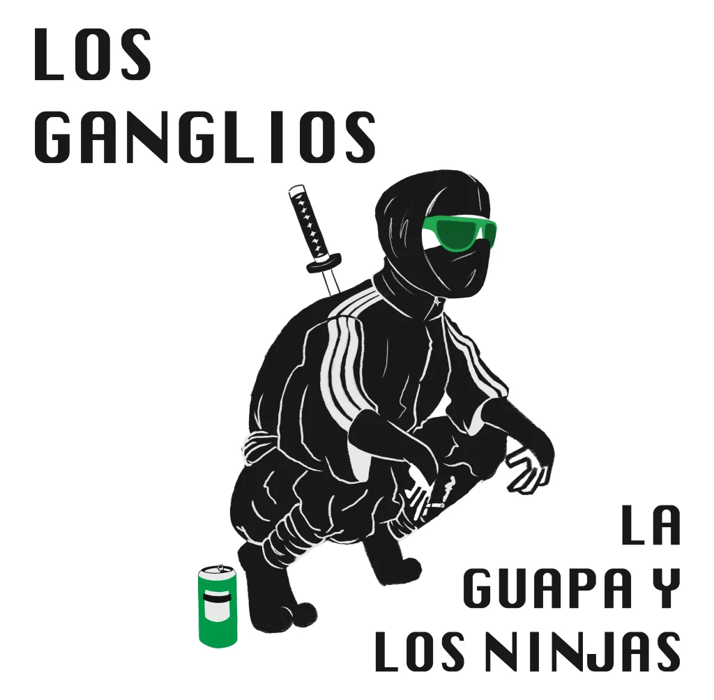 Diseño y reinterpretación de la portada, contraportada y galleta del disco originales de La Guapa y Los Ninjas del grupo extremeño Los Ganglios.